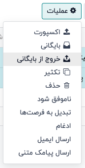 پس از انتخاب فرصتهای مورد نظر، از منوی کشویی ⚙️ اقدامات در بالای صفحه فرصتها، گزینه خروج از بایگانی را انتخاب کنید.