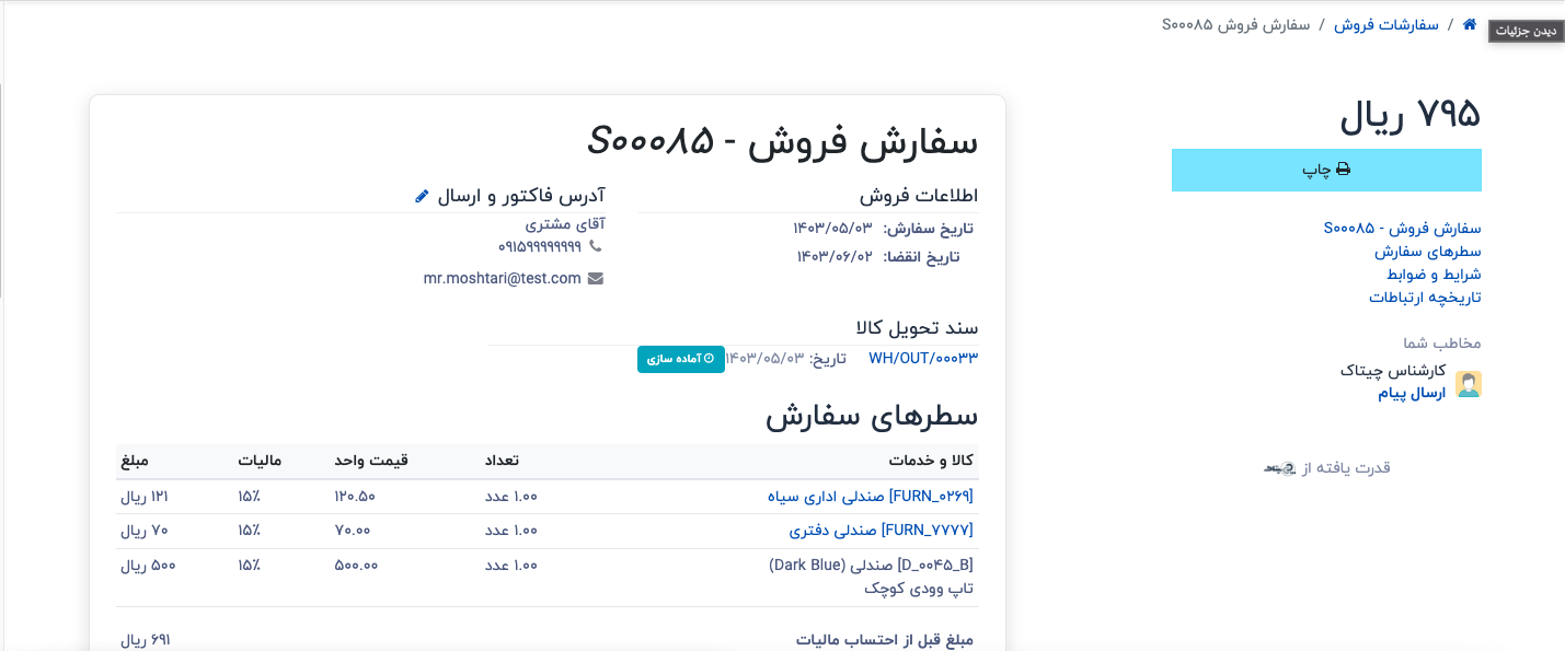 وقتی مشتری یک یا چند محصول اختیاری را به سفارش اضافه میکند، فروشنده بلافاصله از این تغییر و هر تغییر دیگری که مشتری در سفارش ایجاد میکند، مطلع میشود. این امر به فروشندگان امکان میدهد تا در بخش مدیریت فروش از همه موارد مرتبط با سفارش بهروز باشند.
