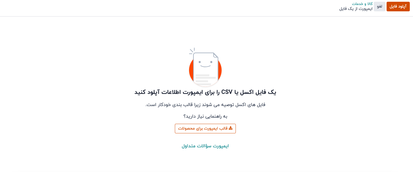 انتخاب گزینه ایمپورت رکوردها صفحه جدیدی با لینک دانلود قالب ایمپورت به شما ارائه میکند تا با قالب ارائه شده کالا ها و اطلاعات آنها وارد شوند.