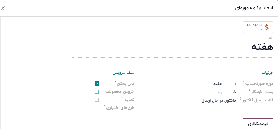 در نهایت، قیمت مورد نظر برای این قیمت دورهای را در ستون قیمت وارد کنید.