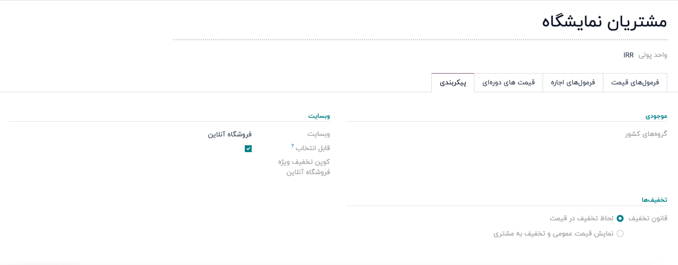 در زیر تب پیکربندی، گزینههایی وجود دارد که میتوانند لیست قیمت را بیشتر سفارشی کنند.