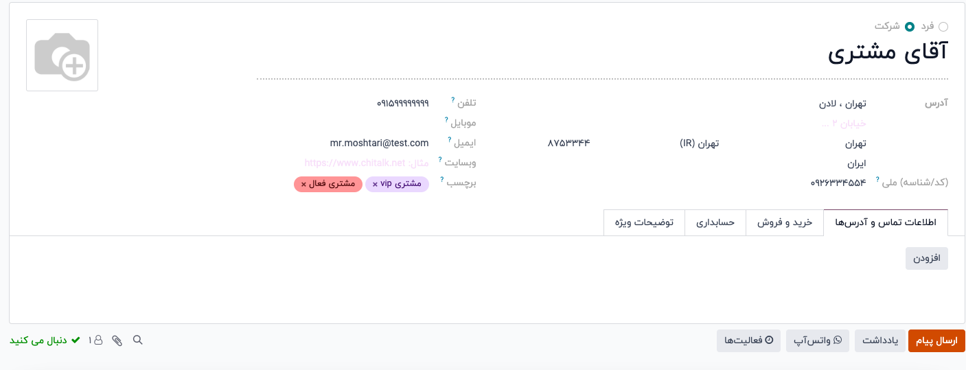 - یا میتوانید بر روی نام مشتری در یک سفارش فروش کلیک کنید تا به فرم تماس آن دسترسی پیدا کنید.