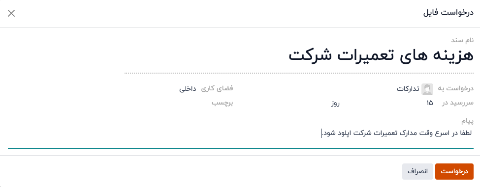 - فرد مورد نیاز برای ارسال فایل را در فیلد «درخواست از» انتخاب کنید.