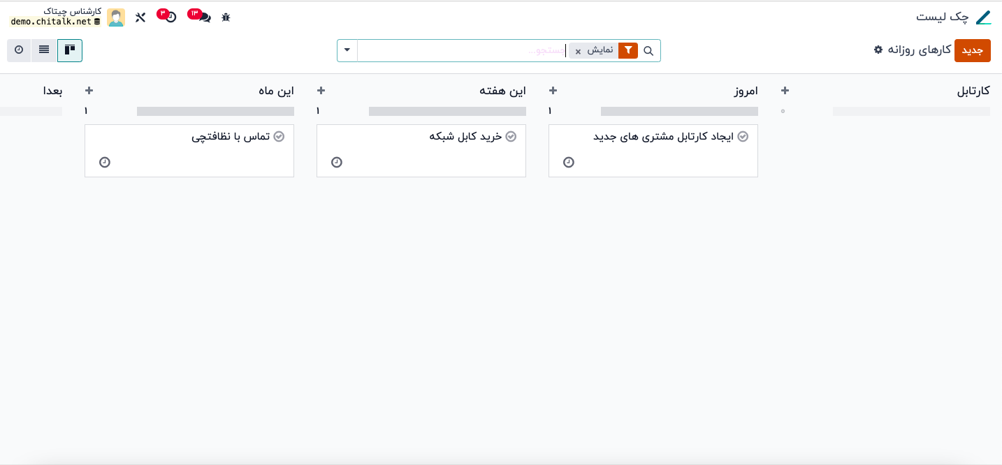 وظایف تخصیص داده شده به شما در داشبورد برنامه قابل مشاهده است. شما می توانید با درگ اند دراپ کردن وظایف مرحله ان وظیفه را تغییر دهید.