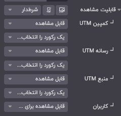 برای هر پارامتری که در بخش قابلیت دید موجود است، میتوانید گزینهی قابل مشاهده برای یا پنهان برای را انتخاب کنید و سپس رکورد مورد نظر خود را از لیست کشویی انتخاب کنید. این امکان به شما اجازه میدهد تا محتوای خاصی را برای گروههای مختلف کاربران نمایش دهید یا مخفی کنید.