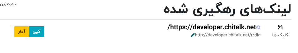 به بخش آمار در پایین صفحه بروید تا نمای کلی از تعداد کلیکهای لینکهای ردیابی شده خود را مشاهده کنید. برای نمایش اطلاعات مربوط به یک بازه زمانی خاص، میتوانید گزینههای تمام زمانها، ماه گذشته یا هفته گذشته را انتخاب کنید.