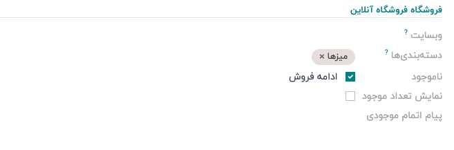 برای انجام این کار، به مسیر وبسایت ‣ فروشگاه آنلاین ‣ کالا و خدمات بروید، محصول مورد نظر را انتخاب کنید، به تب فروش بروید و دستهبندیهای مورد نظر را در بخش فروشگاه آنلاین انتخاب کنید.