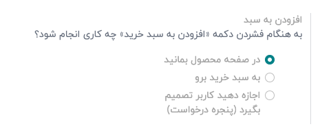 - انتخاب کنید که مشتریان پس از کلیک بر روی دکمه "افزودن به سبد خرید" به کدام صفحه هدایت شوند.
