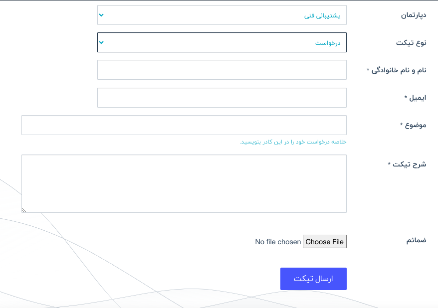 مشتریان ممکن است پس از خرید یک محصول یا اشتراک یا یک خدمت، به پشتیبانی نیاز داشته باشند. میتوانید یک فرم تماس ایجاد کنید که با پر شدن آن توسط مشتری، بهطور خودکار یک تیکت جدید برای تیم پشتیبانی شما ایجاد میشود.