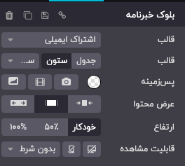 بلوک خبرنامه را میتوان بر اساس الگوهای مختلف پیکربندی کرد. برای این کار، در حالت "ویرایش" ‣ "سفارشیسازی"، روی بلوک کلیک کرده و یک الگو را در بخش بلوک خبرنامه انتخاب کنید. سه الگو موجود است: