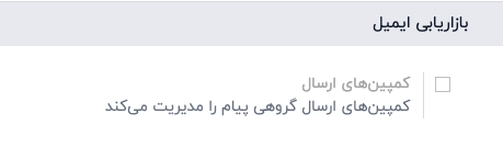 برای فعالسازی کمپینهای پیامک در چیتاک، ابتدا باید اطمینان حاصل کنید که ویژگی کمپینهای ارسال در ماژول بازاریابی ایمیل فعال شده است. به مسیر بازاریابی ایمیل ‣ پیکربندی ‣ تنظیمات بروید و سپس کمپینهای ارسال را فعال کنید و تغییرات را ذخیره کنید.