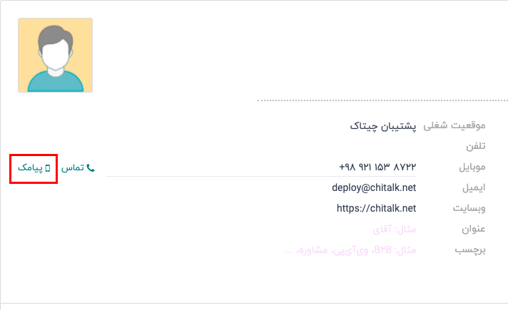 ارسال پیامکها مستقیماً از طریق فرم مخاطب بهطور پیشفرض در دسترس است.