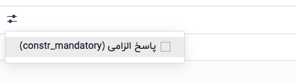 برای مشخص کردن اینکه پرسشها نیاز به پاسخ اجباری دارند یا خیر، بر روی آیکون (ستونهای اختیاری) در سمت چپ عناوین ستونها کلیک کنید. سپس، پاسخ الزامی را از منوی کشویی انتخاب کنید تا ستون پاسخ اجباری در برگه پرسشها نمایان شود.