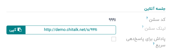 ایجاد سشن آنلاین: با کلیک بر روی این دکمه، پنجره مدیر جلسه در یک تب جداگانه باز میشود و به شرکتکنندگان اجازه دسترسی به جلسه آنلاین داده میشود. با این حال، نظرسنجی واقعی تا زمانی که میزبان جلسه آنلاین دکمه "شروع" را در پنجره مدیر جلسه کلیک نکند، آغاز نمیشود.