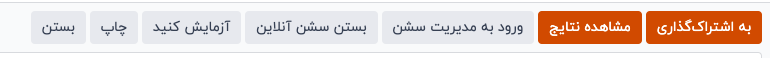 علاوه بر این، پس از کلیک بر روی "ایجاد سشن آنلاین" و باز شدن تب مدیر جلسه، دکمه "ایجاد سشن آنلاین" در فرم نظرسنجی با دو دکمه جدید جایگزین میشود: ورود به مدیریت سشن و بستن سشن آنلاین.
