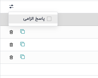 برای نمایش ستون پاسخ اجباری در زبانهی پرسشها که نشان میدهد آیا پاسخ به پرسشها اجباری است یا خیر، روی آیکون (ستونهای اختیاری) که در سمت چپ عنوان ستونها قرار دارد، کلیک کنید.