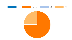 اگر تنها یک پاسخ درست برای یک سوال چند گزینهای وجود داشته باشد، نتایج و پاسخها با یک نمودار دایرهای نمایش داده میشوند. پاسخ درست با یک آیکون ✔️ در کنار گزینه صحیح، در بالای نمودار نشان داده میشود.
