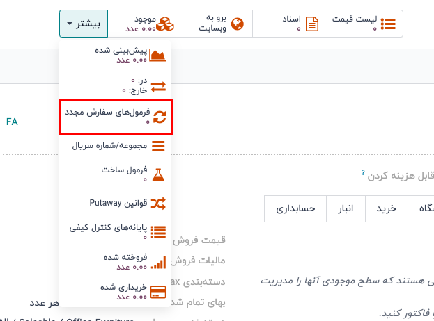 اضافه کردن فرمول سفارش مجدد به محصول