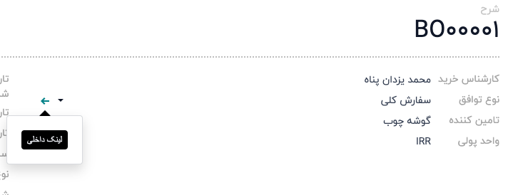 - واحد پولی: واحد پول توافق شده برای این معامله. اگر چند واحد پول در پایگاه داده فعال شده باشد، واحد پول را میتوان از منوی کشویی کنار این فیلد تغییر داد.