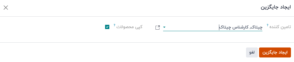 در این پنجره، یک تامین کننده جایگزین را از منوی کشویی کنار فیلد تامین کننده انتخاب کنید، که به آن پیشنهاد جایگزین اختصاص داده میشود.