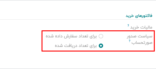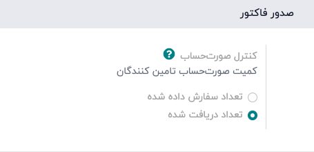 تعداد دریافتشده: فاکتور تنها پس از دریافت تمامی (یا بخشی) از کل سفارش ایجاد میشود. محصولات و مقادیر دریافتشده برای تولید پیشفاکتور استفاده میشود.