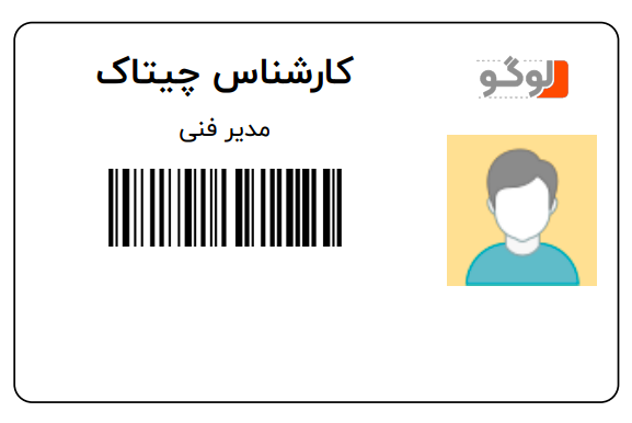 تگ کارمند شامل عکس کارمند، نام، شغل، لوگوی شرکت و بارکدی است که میتواند در کیوسک برای ورود و خروج اسکن شود.