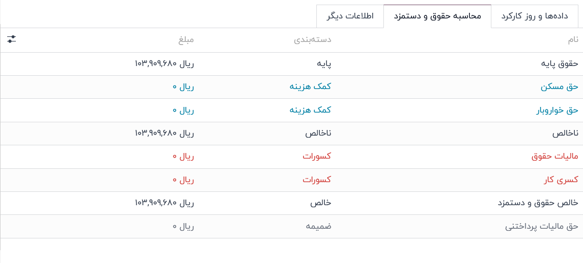 - دستمزد خالص: مبلغ قابل پرداخت به کارمند