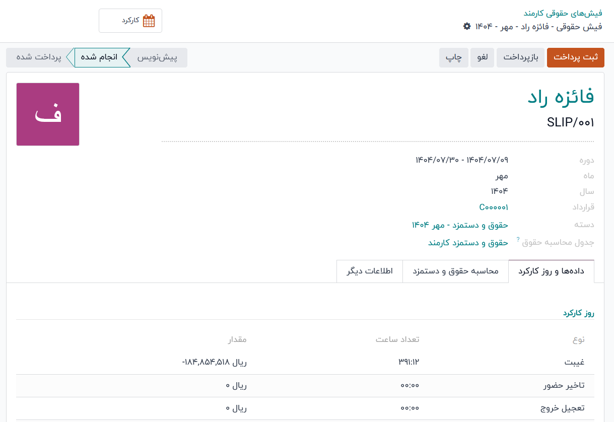 انجام شده: فیش حقوق محاسبه شده و آماده پرداخت است.
