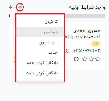 روی آیکون ⚙️ کلیک کنید، سپس گزینه "ویرایش" را انتخاب کنید تا فرم ویرایش مرحله باز شود.