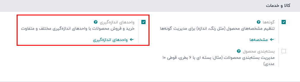 مشخص کردن واحدهای اندازهگیری یک محصول
