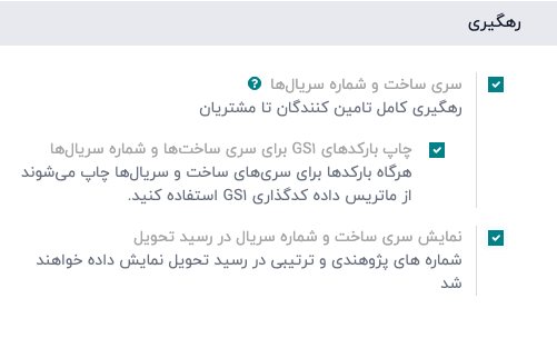 برای ردیابی محصولات با استفاده از شمارههای سریال و سری ساخت، ابتدا باید قابلیت "سری ساخت و شماره سریالها" را فعال کنید.