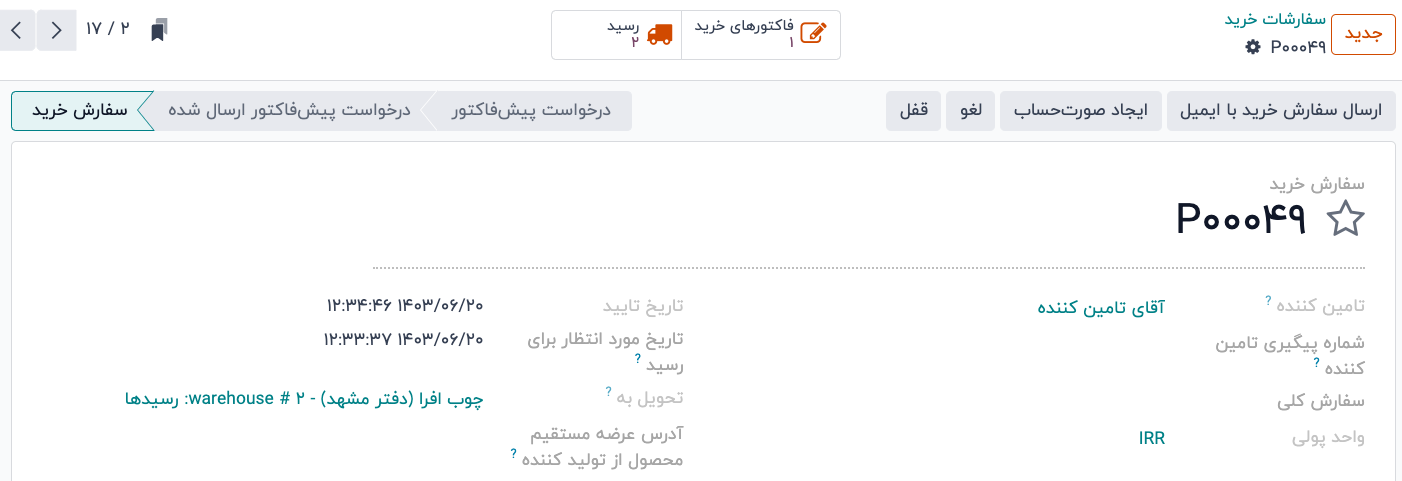 شماره سریالها را میتوان در هنگام ورود اولیه محصولات به انبار، از صفحه جزئیات عملیات در رسید اختصاص داد. برای دسترسی به رسیدها، به برنامه انبار ‣ عملیات ‣ رسیدها بروید.