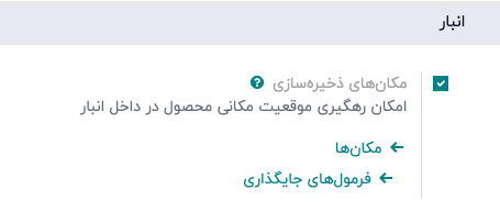 پس از فعال کردن مکانهای ذخیرهسازی، به برنامه انبار ‣ پیکربندی ‣ مکان ها بروید.
