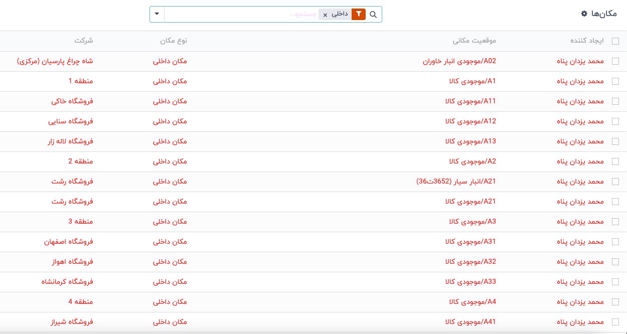شرکت: شرکتی که انبار آن مکان در آن قرار دارد. در صورت چند شرکته بودن دیتابیس شما اگر این مکان بین شرکتها مشترک است، این فیلد را خالی بگذارید.