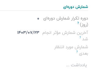 در بخش شمارش دورهای، در صورت لزوم، مقدار فیلد موجودی (روزها) را از مقدار پیشفرض 0 تغییر دهید.