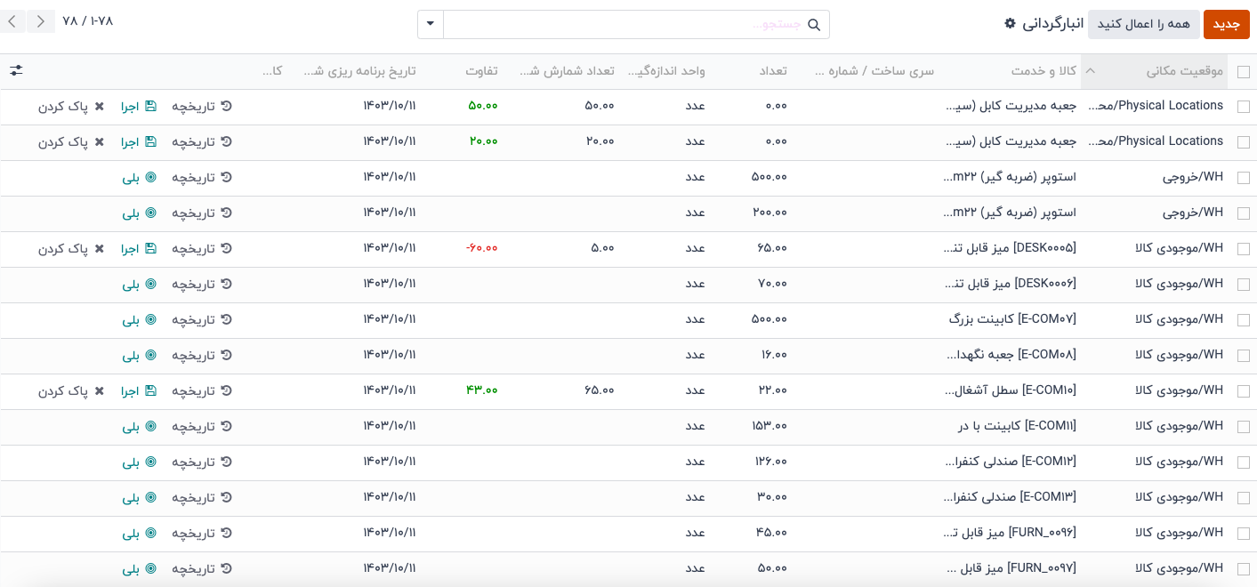 برای مشاهده صفحه انبارگردانی، به برنامه انبار ‣ عملیات ‣ انبارگردانی بروید.