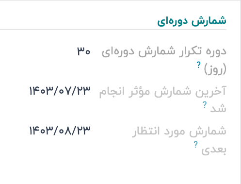 اکنون، پس از اعمال یک انبارگردانی برای این مکان، تاریخ شمارش بعدی بهطور خودکار تنظیم میشود، بر اساس مقداری که در فیلد "دوره تکرار شمارش دوره ای (روز)" وارد شده است.