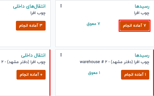 برای ضایعات یک کالا در حین عملیات، به برنامه انبار بروید. از نمای کلی انبار، روی دکمه "آماده انجام" در کارت وظیفه یک عملیات (مانند کارت وظیفه دریافتها) کلیک کنید.
