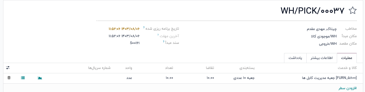 - تامین از موجودی انبار: محصولات از موجودی موجود در مکان منبع برداشته میشوند.