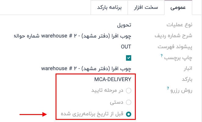 در برگه عمومی، فیلد روش رزرو را پیدا کرده و قبل از تاریخ برنامهریزیشده را انتخاب کنید.