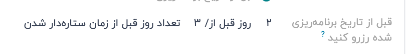 پس از انتخاب، فیلد جدید رزرو قبل از تاریخ برنامهریزیشده در زیر ظاهر میشود. در این فیلد میتوان مقدار روز قبل از و تعداد روز قبل از زمان ستارهدار شدن را از مقدار پیشفرض ۰ تغییر داد.
