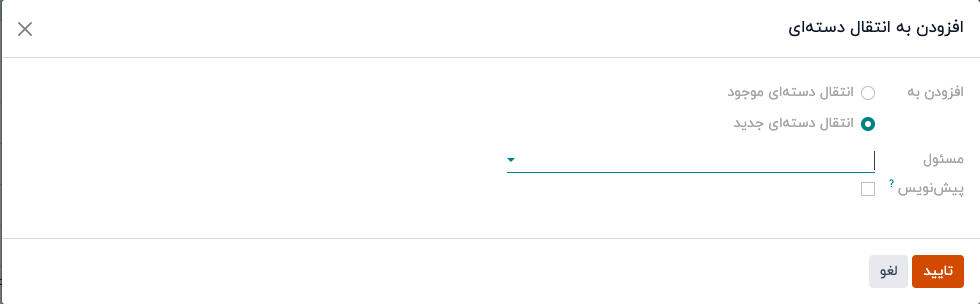 با انجام این کار، پنجرهای برای افزودن به دسته باز میشود که در آن میتوانید کارمند مسئول برداشت را تعیین کنید.