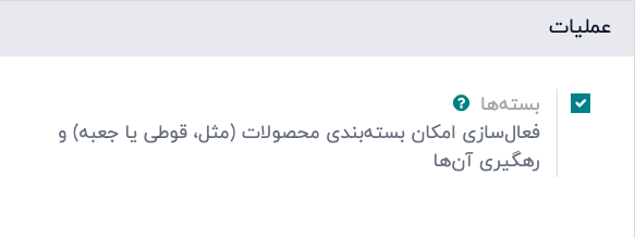 به انبار ‣ پیکربندی ‣ تنظیمات بروید و کادر مربوط به ویژگی بستهها را تیک بزنید.