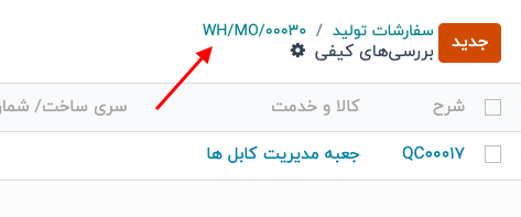 در نهایت، برای بازگشت به سفارش تولید روی لینک WH/MO/XXXXX در بالای صفحه کلیک کنید.