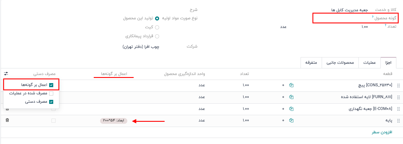فروش و تولید گونه های محصول دارای BoM