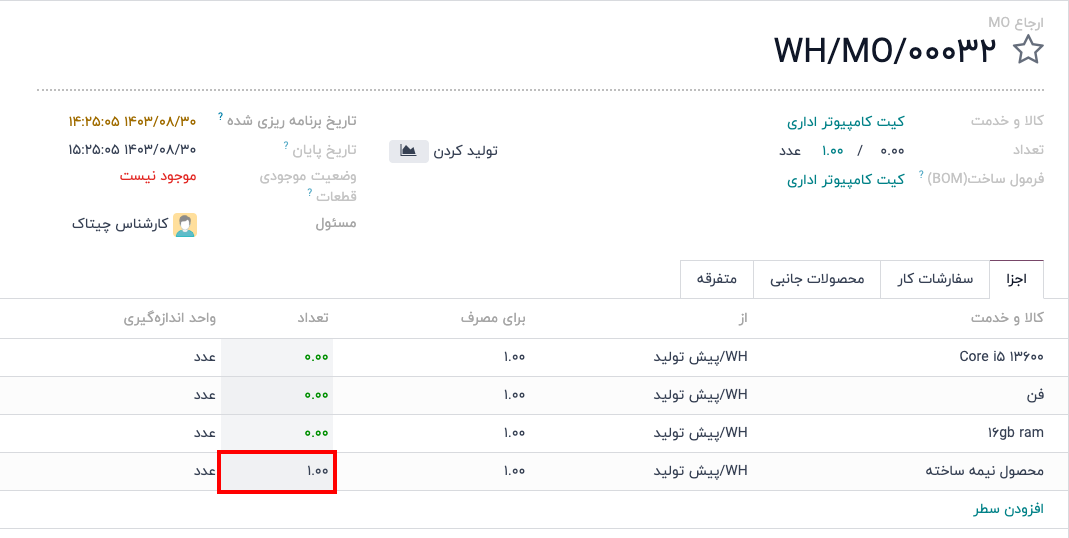 برای تنظیم فرمول ساخت چندسطحی، باید محصول اصلی سطح بالا و محصولات نیمهساخته تنظیم شوند. بنابراین، اولین گام ایجاد محصولات نیمهساخته و فرمولهای ساخت آنها است.
