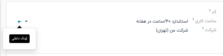 - روی دکمه (پیوند داخلی) در سمت چپ منوی کشویی "ساعات کاری" کلیک کنید تا صفحه ساعات کاری مرکز کار باز شود.