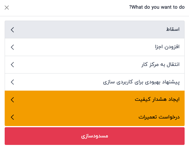 پس از باز کردن پاپ آپ ضایعات با یکی از روشهای ذکر شده در بالا، جزء یا محصول تمامشدهای که قرار است اسقاط شود را از منوی کشویی محصول انتخاب کنید.