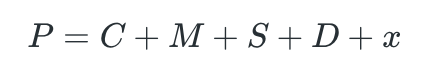 بنابراین، ارزش کل یک محصول پیمانکاری (P) را میتوان با معادله زیر نشان داد: