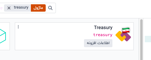 در خصوص نصب ماژول به قسمت برنامه ها مراجعه کرده و ماژول treasury را جستجو نمایید.